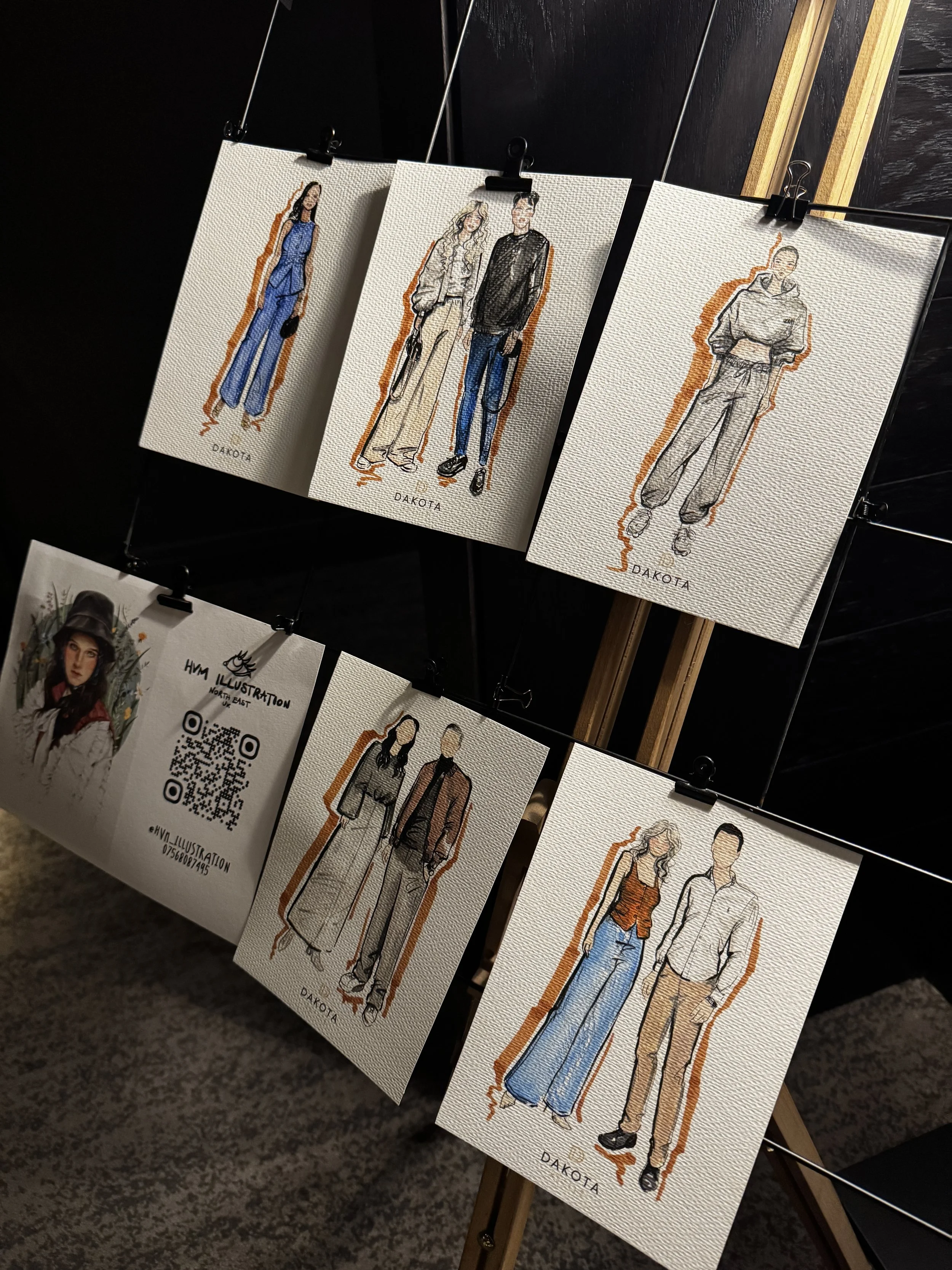 I will capture your guests, producing a fashion illustration for them to take home as a memento of your event.