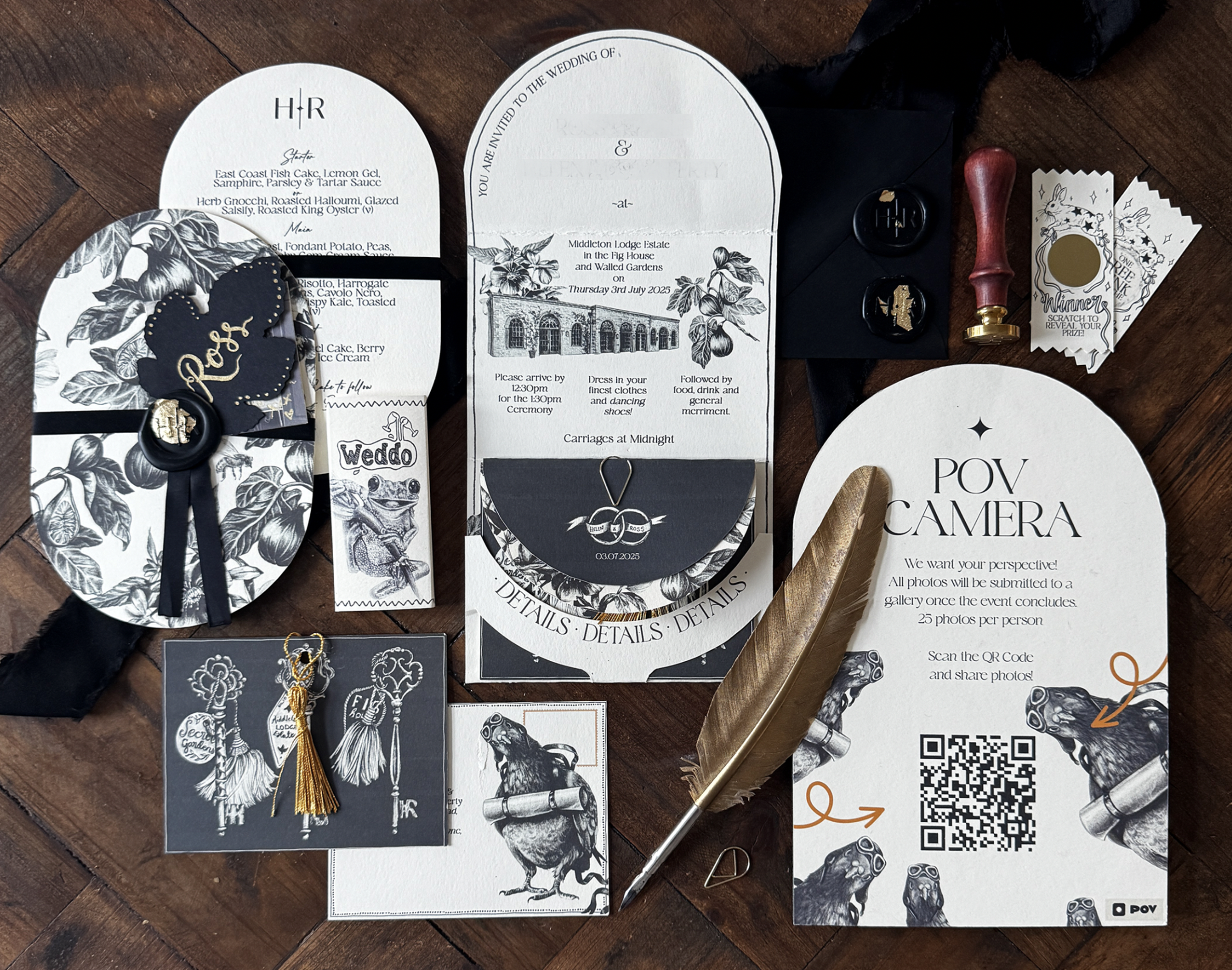 Illustrated elements to add to your invitations, stationery or website for a wedding or any other event. These can be in any style you like and can be in colour too. Contact me and we can create your perfect stationery or add personal touches to your invitations.